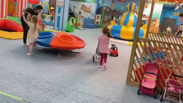 Алиса играет , прыгает на детской площадке