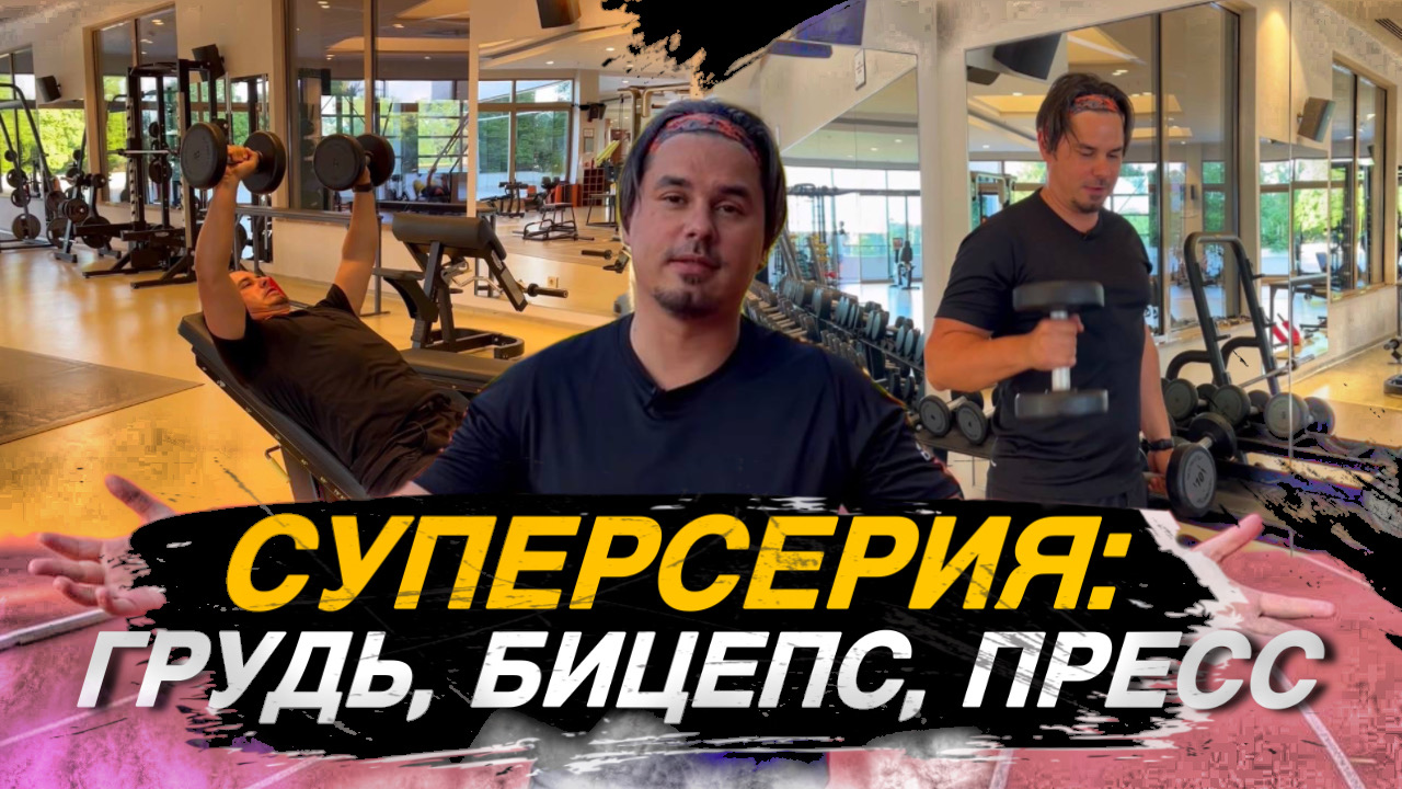 В этом видео эффективная тренировка на грудные мышцы, бицепсы и пресс, которая будет выполняться суперсериями в спортзале. #тренировка #фитнес #спортзал #здоровье