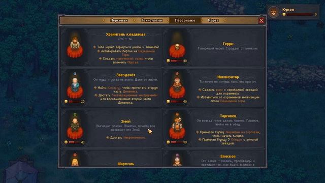 Graveyard Keeper- Stardew valley для бедных и для наших. Отечественный аналог. Хипстер на кладбище. Ну в этой серии что было.. Напилил материалов на крутой забор, поставил. После апгрейда церкви смотрел на новые постройки внутри церкви, мягкие лавки ооочень дорого стоят. Чтобы вести службу в новой крутой церкви надо документы полноправного гражданина (3 серебряных), а денег нет. Опять появился призрак на кладбище, плакался о жизни. Потом взял по 10 слитков железа и стали пошел к кузнецу продавать. Зашел к мельнику, увидел хмель в продаже, порадовался. По дороге мышинально проверил ульи. Вернулся обратно, купил документы полноправного гражданина. Документы аристократа, кстати, стоят 12 золотых! (двенадцать золотых, Карл) Собрал первый урожай хмеля и поставил вариться первое пиво. Сходил к звездочету, купил синюю книгу. У негоЮ кстати, появилась великая книга за 50 серебра которая дает 50 синих шариков (при том, что обычная стоит 5 серебра и дает 25 вроде). Сходил к северному форту, поговорил с охранникому про Кукола. Охранник сказал, что этот чувак по ночам в лесу ходит около форта. Дождался ночи, нашел чувака в лесу, спросил про ожерелье. Чувак сказал что его мог купить сын того хрена из форта, но этот сын пару лет как сбежал. Кукол этот продает оружие (может и покупает?). Зашел в кабак, поговорил с владельцем, дал +10 отношения (говорит, уж очень церковь хорошая у меня). Зашел в церковь, Епископ разрешил вести службы, но сказал улучшать дальше церковь и кладбище (50 и 200) до собора. Провел службу - зачитал молитву о процветании и нагло продал ее тому же епискому. А там и первый квас сварился! Потом сходил купил еще семян хмеля. С легким офигением выяснил, что не могу поставить больше лавок в церкви, хотя место вроде есть. Только заменять существующие. Вторую исповедальню тоже не могу поставить - некуда (4 на 4 размером). Взял технологию витражных окон. Взял плавку драгметаллов. Исследовал золото и серебро. Поставил плавиться серебряные слитки, а тут и сказке конец..
