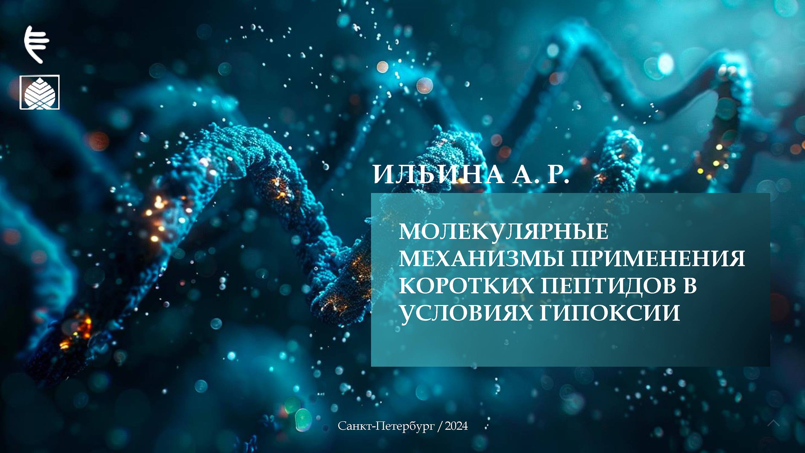 Тема презентации: Молекулярные механизмы применения коротких пептидов в условиях гипоксии. Спикер: Анастасия Романовна Ильина — научный сотрудник лаборатории молекулярных механизмов старения отдела биогеронтологии АНО НИЦ «Санкт-Петербургский институт биорегуляции и геронтологии»; аспирант отдела патологии и патологической физиологии ФГБНУ «Институт экспериментальной медицины».
