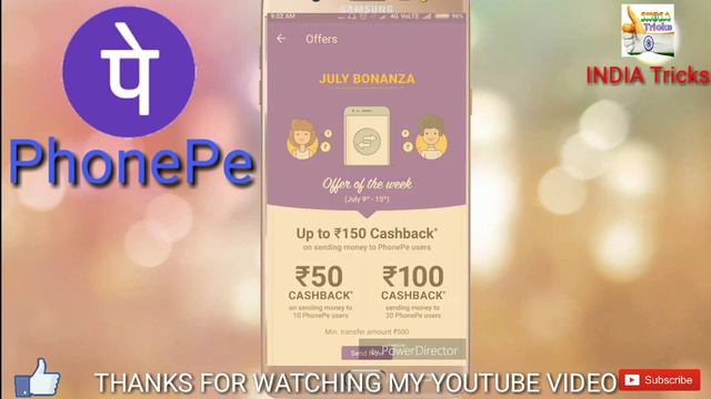 PhonePe Cashback Offer | PhonePe Send UPI MONEY & Get Rs-150 CASHBACK | INDIA Tricks | JULY Cashback Offer PhonePe Send Money minimum Rs-500 Different 20 User & get Free Cashback Rs-150 ...Hurry up PhonePe app- Use PhonePe for instant bank transfers & more! Earn up to ₹1000 on your first money transfer on #PhonePe. Use my link - https://phon.pe/ru_rakeio1w2 ____________________________________________ Paytm July New Promo code 2018 || 100 % Cashback Offer On Paytm || INDIA Tricks Video Link-https://youtu.be/DsyNGO5uuzo all user 1 St time recharge offer Recharge 20 and get 20 Cashback PROMO CODE - MONTHLY20 ____________________________________________ ________________________________________________________________________________________ FREE UNLIMITED MOBILE RECHARGE OFFER ON IMO || BEST REFER BONAS APP || NEW REFER APP 2018 Imo app - https://refer.imo.im/Yno9XK __________________________________________ __________________________________________ AIRTEL TV APP-https://play.google.com/store/apps/details?id=tv.accedo.airtel.wynk AIRTEL FREE DATA 1 GB/DAY-https://youtu.be/F7O2qThFJC4 AIRTEL FREE 4 GB DATA-https://youtu.be/DxKBtsXGA-k Facebook link-https://goo.gl/7x4jC4 GMAIL LINK- crakesh523@gmail.com