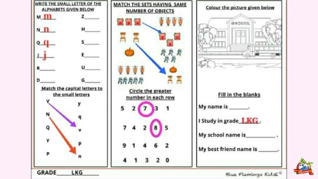 Grade LKG Crash course sheet solving video for week 2, day 8. To subscribe for Grade wise crash course, please click on the link below https://wa.me/919352145335/?text=crash-course We'll love to connect with you on: https://www.youtube.com/c/BlueFlamingoKidsE https://www.instagram.com/blueflamingokids/ https://www.facebook.com/BlueFlamingoKids