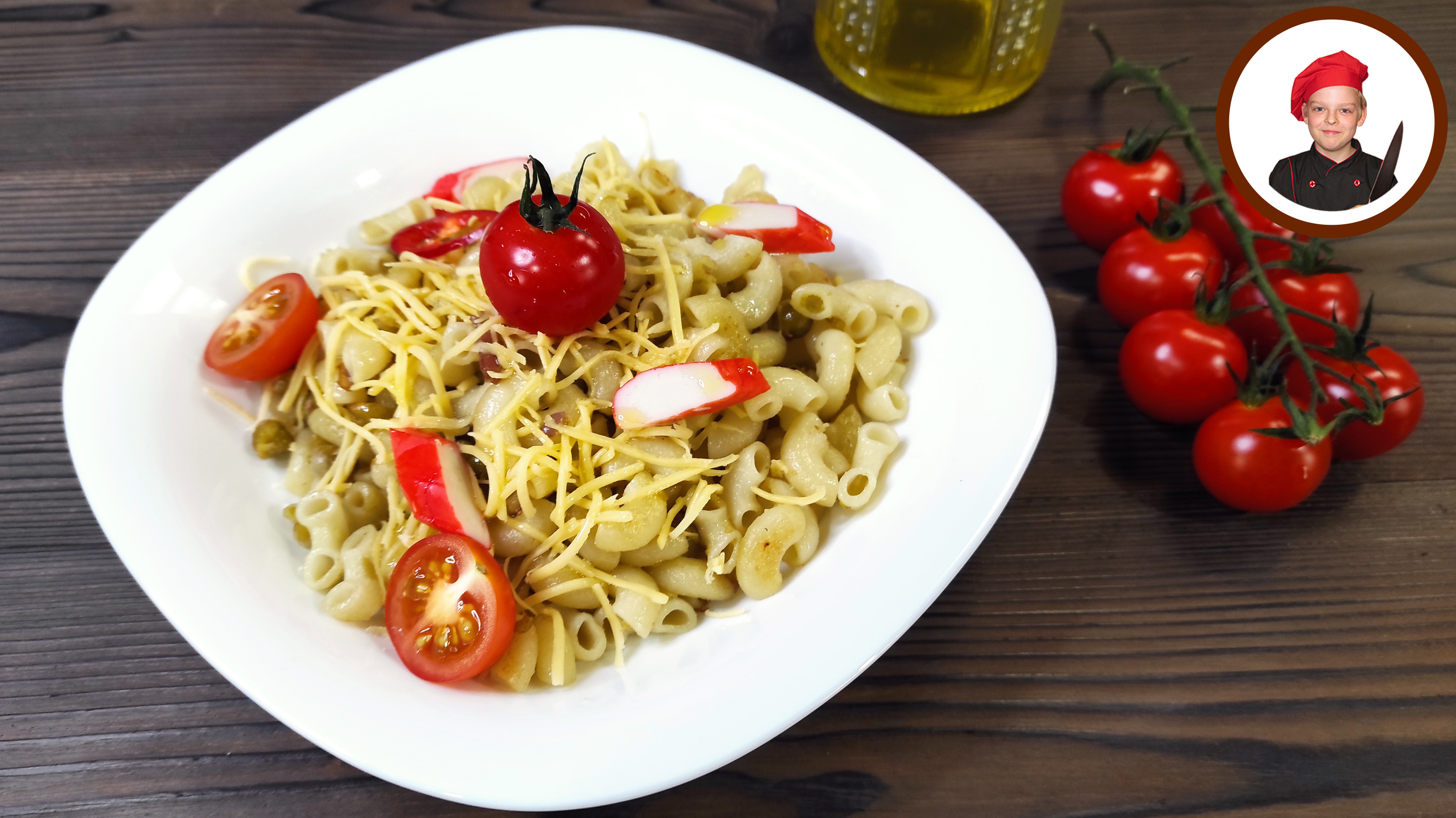 Макароны с итальянским оттенком. Сложность приготовления - легко. Общее время приготовления - 30 минут Ингредиенты на 2 порции: • Макароны "Рожки" - 100 г. • Лук - 1 шт. • Бекон - 150 г. • Масло растительное - 4 ст. л. • Зеленый горошек - 250 г. • Сыр - 50 г. • Помидоры черри - 4-5 шт. • Перец Чили - 1 шт. • Крабовые палочки - 100 г. • Соль по вкусу Оборудование и посуда: • Плита • Сковорода • Кастрюля • Дуршлаг • Блендер #рецепты #макароны #Апухтин #кулинария