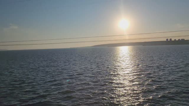 Жигулёвское море и солнце из окна поезда