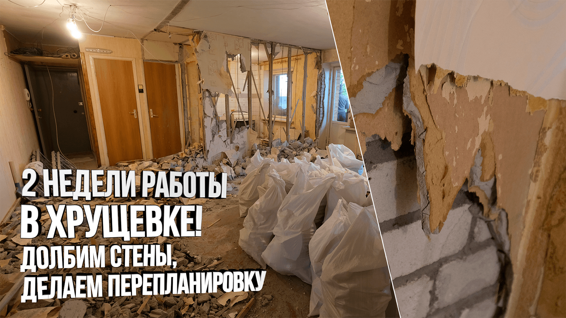 Ремонтный VLOG: полный демонтаж в хрущевской квартире. 2 недели работ и возведение новых перегородок