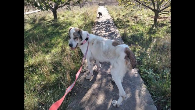 Прогулка с алабаем Сарой была совсем недолгой, ведь она отвлекается на котиков