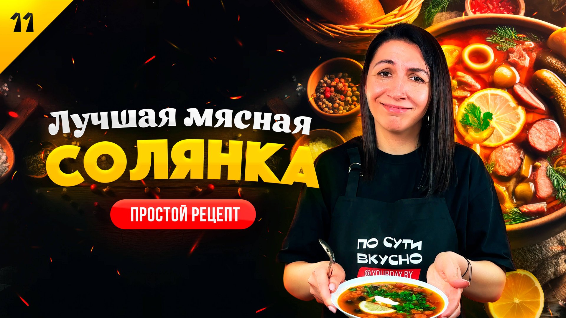 Сегодня в меню YourDay по-настоящему мужская еда! Вашему вниманию простой и очень удачный рецепт сборной мясной солянки 😎👍🏻 РЕЦЕПТ НИЖЕ 👇 Если хотите поддержать нас 👉🏻 https://boosty.to/yourday Наши соцсети: YouTube: https://www.youtube.com/@yourday_by Instagram: https://instagram.com/yourday.by/ Telegram: https://t.me/yourday_by РЕЦЕПТ ИНГРЕДИЕНТЫ ДЛЯ ПРИГОТОВЛЕНИЯ МЯСНОЙ СОЛЯНКИ: — 400 гр. мяса (свинина или говядина) — 250 гр. колбасы варено-копченой — 250 гр. копченых охотничьих колбасок — 200 гр. маслин — 3 шт. соленых огурцов — 0,5 стакана огуречного рассола — 1-2 шт. лука — 2 ст.л. томатной пасты — 1 ст.л. растительного масла — 1 ч.л. сахара — зелень, лимон, сметана, приправы и соль по вкусу ПРИГОТОВЛЕНИЕ : — Наливаем в кастрюлю воду и варим в ней мясо до состояния готовности — На смазанной маслом сковороде обжариваем нарезанный лук, огурцы и копчености — В сковороду добавляем томатную пасту, перемешиваем и тушим в течение 5 минут — Вареное мясо достаем из кастрюли, нарезаем не кусочки и отправляем обратно в кастрюлю — Туда же отправляем содержимое сковородки и огуречный рассол — Добавляем соль (приправы по желанию) и варим в течение 10 минут — Наливаем соляночку в красивую миску, украшаем лимоном, сметаной и зеленью👍 Приятного аппетита🥰 #солянка #мяснаясолянка #сборнаямяснаясолянка #рецептсолянки #домашняясолянка #солянкасколбасой #классическаясолянка #рецепты #еда #вкусныйсуп #мужскаяеда#мужскойсуп #суп #рецептсупа