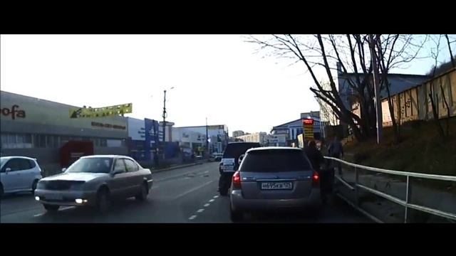 Схватка двух бойцов на дороге в городе