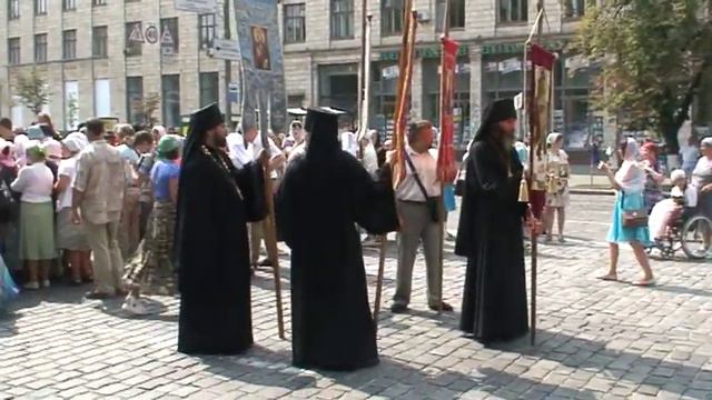 Чтобы не было провокаций, люди, пришедшие на ход, обязательно проходили через металлодетекторы. После одна колонна верующих шла с Площади Независимости и на Европейской площади встретилась с колонной, идущей с ул. Грушевского. Объединившись в единый ход, верующие направились к Владимирской горке.