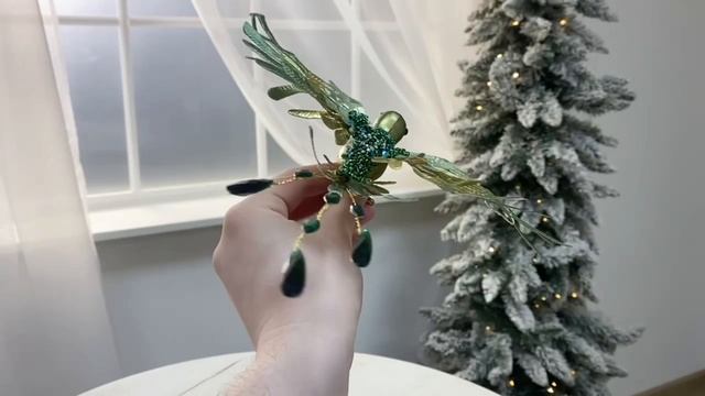 Декоративная птичка ДРАГОЦЕННАЯ КОЛИБРИ на клипсе, полиэстер, акрил, зелёная, 20 см, SP20216