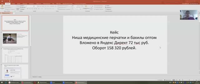 Кейс Медицинские перчатки и бахилы оптом Яндекс Директ: вложено 72 тыс руб, выручка 158 тыс руб.