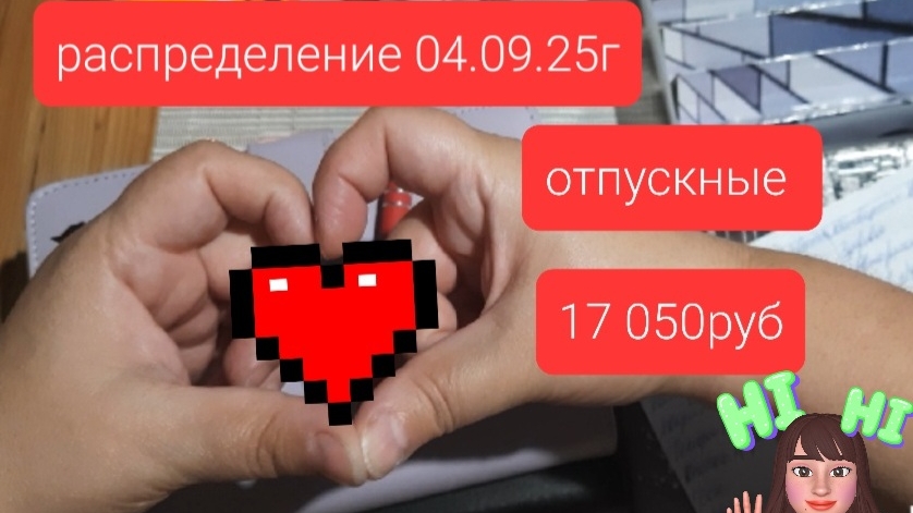 Здравствуйте дорогие гости канала😊⚘️ сегодня к публикации ролик первое распределение в сентября (04.09.25г) сумма 17 050₽, это мои отпускные за период с 01-11 сентября, но получила в конце августа В этот раз конверты пополнены питание-здоровье-ипотека-дом и обучение и остальные чуток заполнила. Присоединяйтесь к телеграмм каналу там я чаще и больше публикую свои будни. https://t.me/yulia140282 Если хотите помочь моему каналу 5536913803269154 тинькофф 🤗 Буду вам безмерно благодарна