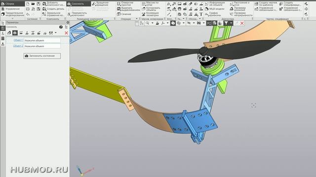 HUBMOD.RU Скачать 3д модели и инструкцию по сборке данного дрона возможно на сайте HUBMOD.RU В этом уроке мы рассмотрим использование инструмента "Сборка" в Компас 3D на примере разработки элементов защиты винтов гексакоптера. Этот урок будет полезен как для начинающих, так и для более опытных пользователей, желающих улучшить навыки работы со сборками. Шаг 1: Создание нового проекта 1. Откройте Компас 3D и создайте новый проект, выбрав тип документа "Сборка". 2. Дайте имени вашему проекту, например, "Защита винтов гексакоптера". Шаг 2: Импорт деталей Перейдите в меню "Вставка" и выберите "Деталь". Импортируйте заранее созданные 3D-модели винтов и защитных элементов. Если модель не создана, её можно разработать в режиме "Деталь" и сохранить. Шаг 3: Добавление деталей в сборку 1. Начните с добавления основной детали – винта гексакоптера. Выберите ее в панели деталей и перетащите в рабочую область сборки. 2. Повторите процесс для остальных деталей, например, защитных элементов, которые будут располагаться вокруг винтов. Шаг 4: Наложение сопряжений Чтобы элементы правильно взаимодействовали друг с другом, воспользуйтесь инструментом "Сопряжение". Используйте следующие типы сопряжений: - Совпадение: для совмещения их осей. - Косое сопряжение: для точной установки защитного элемента на винт. С помощью простого интерфейса вы сможете легко настраивать детали, чтобы обеспечить правильное положение и ориентацию каждого компонента сборки . Шаг 5: Проверка коллизий После создания сборки, важно проверить возможные коллизии между деталями: 1. В меню "Инструменты" выберите "Проверка коллизий". 2. Запустите проверку, чтобы выявить любые потенциальные проблемы. Если обнаружите коллизии, вернитесь к пункту "Наложение сопряжений" и скорректируйте положение деталей. Шаг 6: Сохранение и экспорт сборки 1. Сохраните вашу сборку, выбрав "Файл" ﹥ "Сохранить как". 2. Для дальнейшего использования или представления проекта, вы можете экспортировать его в другие форматы, такие как PDF или DWG, в зависимости от требования . Заключение В данном уроке вы узнали, как создать сборку защищающих элементов для винтов гексакоптера в Компас 3D. Теперь вы обладаете навыками, необходимыми для работы со сборками в этом CAD-программном обеспечении. Вы можете продолжать экспериментировать с различными элементами и функциональностью программы, чтобы улучшить свои навыки моделирования и проектирования .