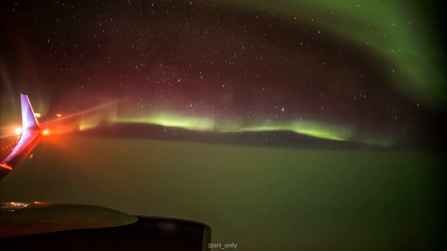 Северное сияние из окна самолёта