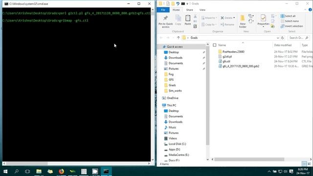 This tutorial is about creating a control file (ctl) for GFS grib2 data using g2ctl perl script. Then open this file in GrADS and make an output. Read the description below for more info. First step : Download Perl script g2ctl from ftp://ftp.cpc.ncep.noaa.gov/wd51we/g2ctl/g2ctl Keep it in your working directory and follow the steps in the video. Requirements ═══════════════════════════════════════════════ GrADS/Opengrads ( http://cola.gmu.edu/grads/ ) Perl ( https://www.perl.org/ ) Perl script - g2ctl.pl ( ftp://ftp.cpc.ncep.noaa.gov/wd51we/g2ctl/g2ctl ) For Grib1 files, please use ══════════════════════════════════════ script from http://www.cpc.ncep.noaa.gov/products/wesley/grib2ctl.html and follow the instructions For multiple input files═════════════════════════════════════════ First of all, create a CTL file for a single file, then modify the CTL file. You need to change the first line specifying the grib file in the CTL file, as dset ^gdas1.fnl0p25.2020081512.f00.grib2 In this format, year, month, and days are written in variable format with representative digits dset ^gdas1.fnl0p25.202008%d2%h2.f00.grib2 (here %d2 represents days having 2 digits, similarly %h2 means hours having 2 digits, for ref: http://cola.gmu.edu/grads/gadoc/templates.html ) Secondly, below that line, add one more following line to take CTL as a template, options template Thirdly, you need to specify the time dimension, tdef, in this case (or additional dimension increment in multiple files). In this example, I am using 6 hourly data of GDAS and have 15 files in total starting from 00Z 15 AUG 2020. tdef 15 linear 00Z15aug2020 6hr Then save the CTL file. For reference : http://cola.gmu.edu/grads/gadoc/templates.html http://cola.gmu.edu/grads/gadoc/descriptorfile.html http://gradsusr.org/pipermail/gradsusr/2011-March/029617.html http://gradsusr.org/pipermail/gradsusr/2011-March/029618.html