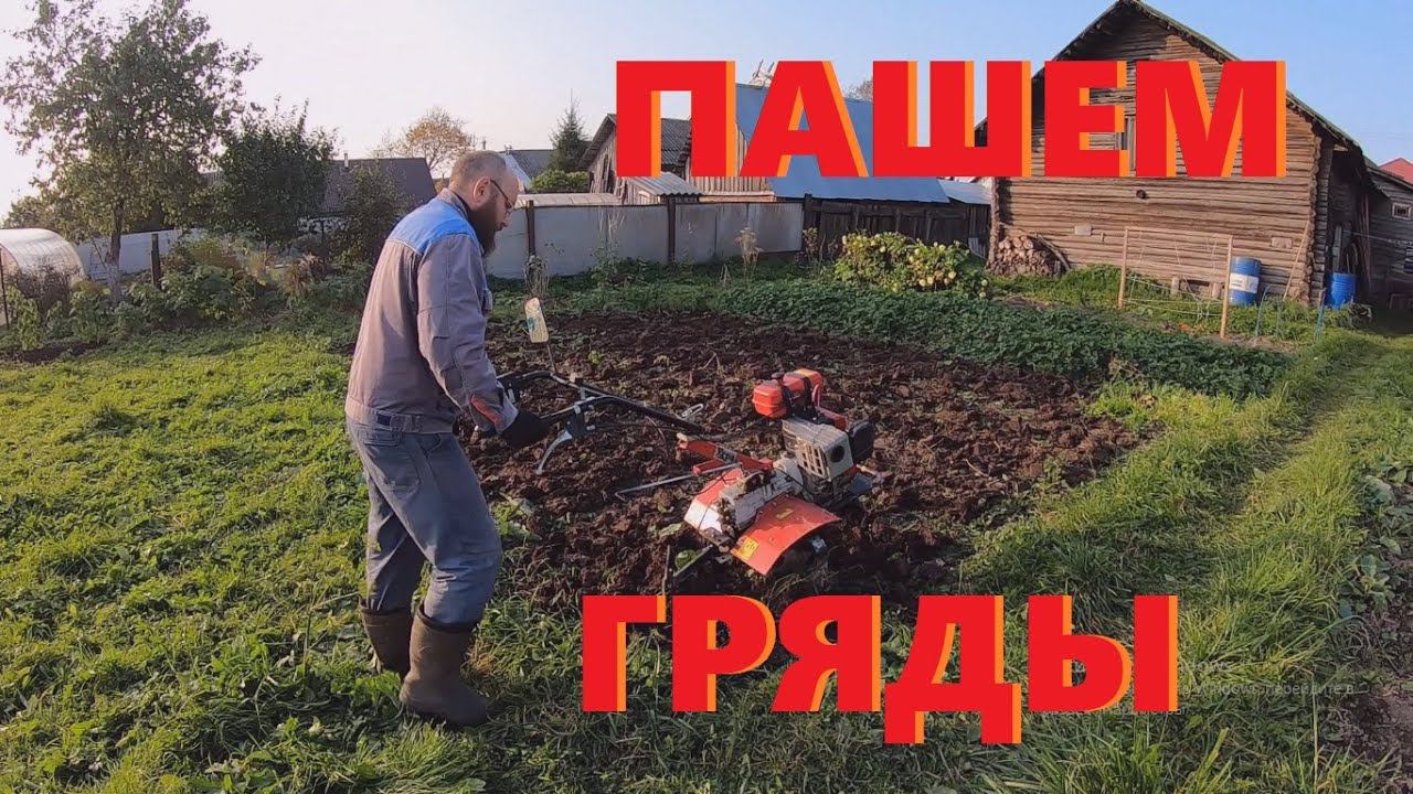 Перепахиваю гряды на мотоблоке для пересадки клубники.