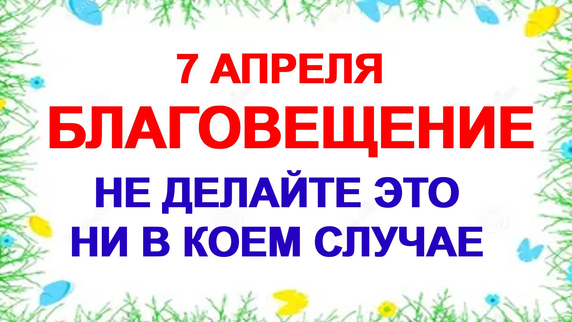 #какойпраздник7апреля#народныйпраздник#народныеприметы#благовещениепресвятойбогородицы 7 апреля православная церковь отмечает великий праздник -Благовещение Пресвятой Богородицы. Что можно и что нельзя делать в этот день Приметы погоды на 7 апреля 00:00 история праздника 00:58 традиции и обряды этого дня 02:04 что нельзя делать сегодня 03:18 именинники дня 03:30 приметы погоды Мои видео теперь можно найти в VK Видео по ссылке https://vk.com/club228815093