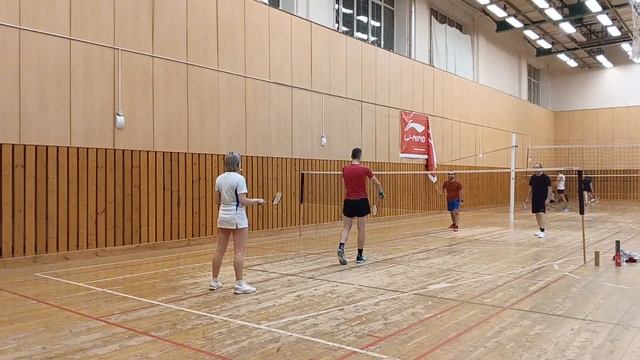 Тренировочная игра в бадминтон через сетку. Играют любители, новички и опытные бадминтонисты. Игра в Лестехе (МГУЛ ранее, сейчас называется филиалом Бауманки). Хочешь тоже играть? Приходи - https://badminton77.ru/map/4/ #badminton #badmintonlovers #badmintonrussia #lesteh #ЛесТех #бадминтон