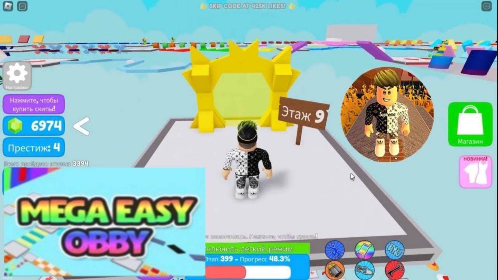 Mega Easy Obby 🌟 825 Stages! Roblox. Супер Легкий Обби 🌟 825 Этапов! Паркур. 9 Этаж + Престиж!