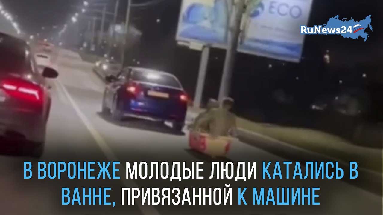 В Воронеже задержали мужчин, которые катались в ванне, прикрепленной к машине