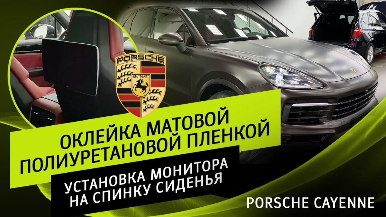 Porsche Cayenne - оклейка матовой полиуретановой пленкой. Установка монитора на спинку сиденья.