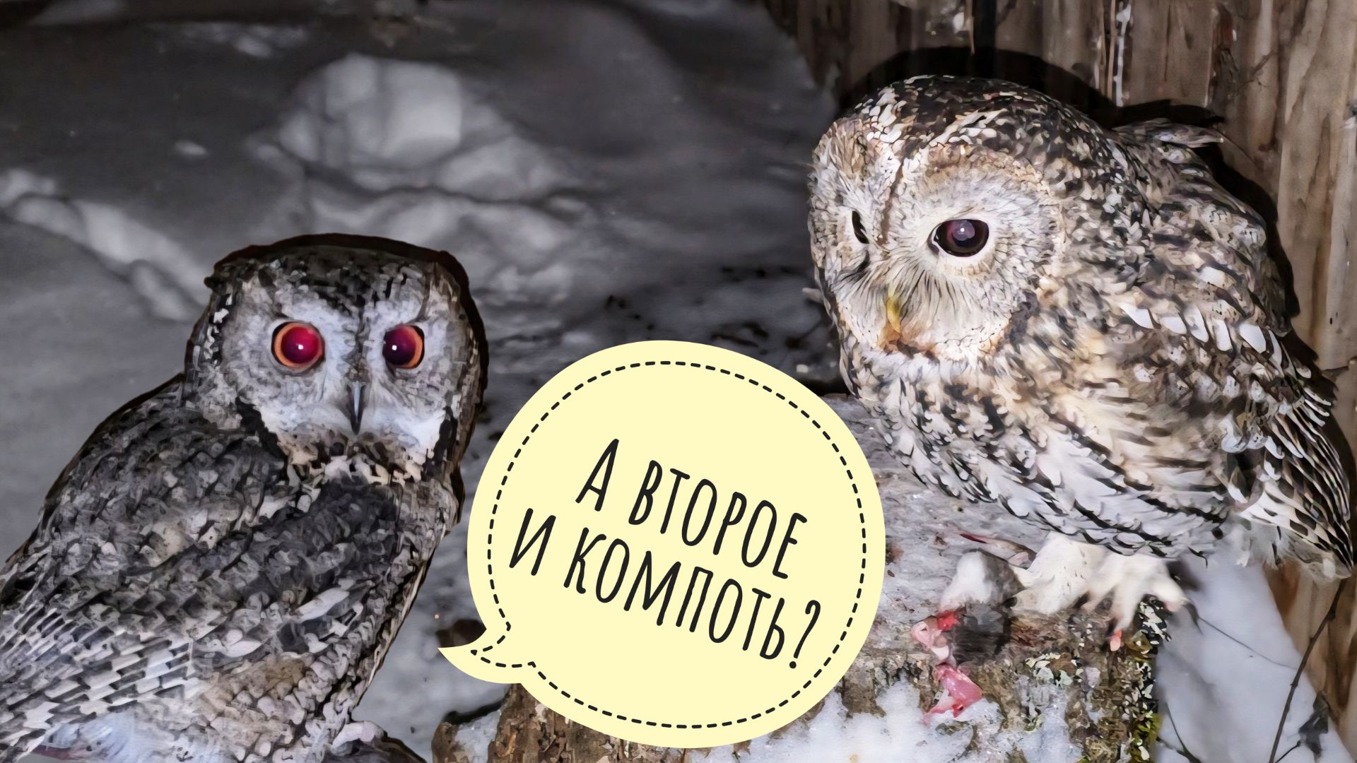 Я долго пыталась заснять моменты, когда совы в уличных вольерах забирают свою еду, но получилось только в этот раз. Они, наконец, поняли, что в мороз надо хватать ужин быстрее, пока мыши не заледенели от холода. С воробьиным сычиком Пуньком обычно никаких проблем - он всегда сразу еду забирает. Цветочковые совы Лютик и Одуванчик раньше долго ждали, когда я уйду подальше, и есть начинали поздней ночью, а теперь стали расторопнее. Серые неясыти тоже начали есть, пока всё тёплое. Неясыть Кофи я тоже засняла, но он в отдельном видео будет. #owlhouse #villagelifestyle #cuteowl Мои каналы в Телеграм для дополненной реальности мира вокруг совы филина Ёлки: https://t.me/nika_zubra - про все текущие дела, новости и обсуждения https://t.me/yollphoto - красивые фото природы и животных моего авторства https://t.me/yollgarden - про мой сад и домашние растения Заходите, смотрите, оставайтесь, если понравится!