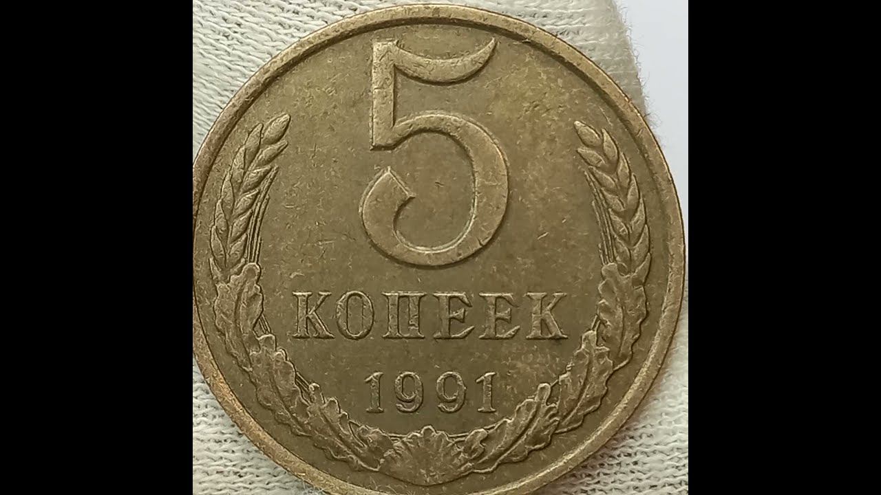 Монета 5 копеек 1991 года.