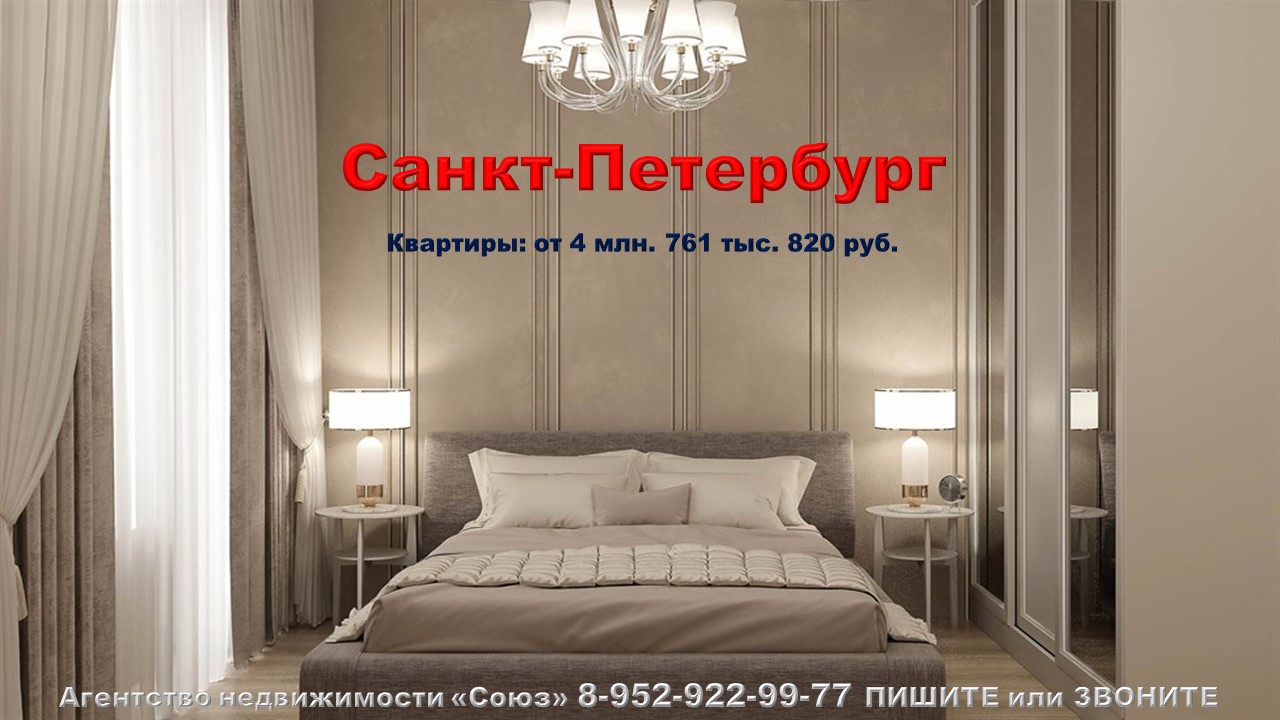 Подпишитесь на нас. Благодарим !!! https://www.youtube.com/@nedvigimoct/videos - мы на Ютубе https://dzen.ru/nedvigimoct?tab=longs&utm_referrer=dzen.ru - мы на Дзене https://rutube.ru/channel/27083000/videos/ - мы на Рутубе https://vk.com/club223108371 - мы в ВК https://ok.ru/lyubayan - мы в Ок Агентство недвижимости «СОЮЗ» Покупайте: квартиру в Санкт-Петербурге. Шушары п., Нины Петровой ул., м. Московская (15 минут на машине) Агент по новостройкам: 89529229977 (WhatsApp) Цены на квартиры точно такие же как и у застройщика. Квартиры продаются БЕЗ РИЭЛТОРСКОЙ КОМИССИИ !!!. Ст. квартиры: от 4 млн. 761 тыс. 820 руб. Ежемесячный платеж: 22 811 руб. при ставке 6% Площадь общая: 22,3 м2 - 25,5 м2 1к. квартиры: от 6 млн. 523 тыс. 470 руб. Ежемесячный платеж: 31 250 руб. при ставке 6% Площадь общая: 32,4 м2 - 40,9 м2 2к. квартиры: от 10 млн. 406 тыс. 250 руб. Ежемесячный платеж: 49 850 руб. при ставке 6% Площадь общая: 54,9 м2 - 62,8 м2 3к. квартиры: от 13 млн. 302 тыс. 700 руб. Ежемесячный платеж: 63 725 руб. при ставке 6% Площадь общая: 68,5 м2 - 71,3 м2 Срок сдачи: сдан - 3 кв. 2024 Срок выдачи ключей: 2 кв. 2024 - 1 кв. 2025 Договор: ДДУ Тип дома: блочно-монолитный Тип отделки:отделка "под ключ" Парковка: отдельная Потолки: 2,77 м. Преимущества:Транспортная доступность. Развитая инфраструктура. Собственный парк. Большой ассортимент планировок. Детские и спортивные сооружения. Круглосуточное видеонаблюдение. Описание комплекса: Жилой комплекс располагается на территории Пушкинского района, на пересечении Пулковского и Волхонского шоссе. Локация идеально сочетает близость к деловому центру города — Московскому району, а также доступность великолепных исторических пригородов. От кварталов ЖК — всего 15 минут до станции метро «Московская»: это район с множеством офисов, бизнес-центров, магазинов и ресторанов. До аэропорта — 10 минут. Роскошные парки и дворцы Царского села — в 20 минутах. Павловский парк и дворец — в получасе езды. Такое окружение вдохновит на активную и насыщенную жизнь и при этом подарит возможность часто бывать на природе. Жители ЖК также смогут легко организовать себе культурный досуг: в пригородных музеях регулярно проходят выставки, концерты и фестивали для детей и взрослых. В распоряжении жителей богатая инфраструктура, которая позволит жить активно и комфортно. В Пушкинском и Московском районах есть все для образования, шопинга, отдыха, развлечений, занятий спортом и решения бытовых вопросов. Неподалеку располагается 10 общеобразовательных школ и 10 государственных детских садов, а также несколько частных детских клубов. Кроме того, работают танцевальные и вокальные студии, школы спорта и искусств. На территории кварталов ЖК будет 7 собственных детских садов и 3 школы. Для шопинга, развлечений и семейных ужинов неподалеку от Олимпийских кварталов есть несколько крупных торговых центров. Самый популярный аутлет Петербурга, ТЦ Outlet Village Pulkovo, будет у вас под боком. Здесь можно купить брендовые вещи по доступным ценам. В «Пулково-3» — пройтись по магазинам, посетить картинг, боулинг, бильярд или страйкбол. В 5 минутах езды от кварталов ЖК — знаменитая Пулковская обсерватория, где проводятся познавательные экскурсии для взрослых и детей. В 10 минутах езды от Олимпийских кварталов находится крупнейший в Петербурге выставочный центр «Экспофорум». Здесь проходят различные мероприятия, в том числе спортивные: кубки, праздники активного отдыха и многое другое. Квартал выдержан в стиле уютной олимпийской деревни. Высота