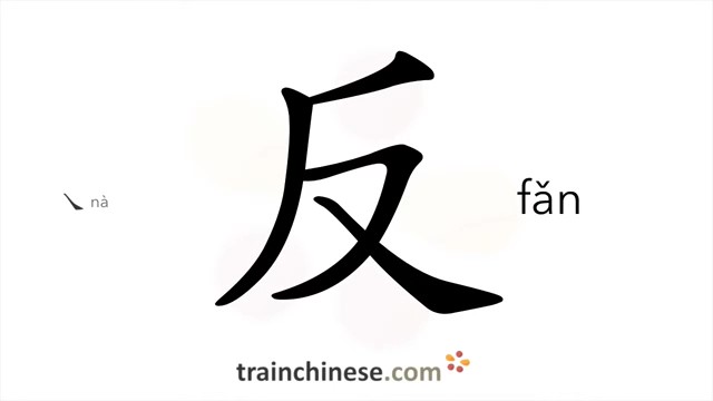 反 (fǎn) anti-; opposite; inverse; turn over; rebel, revolt / опрокидываться *перевёрнутый *мятеж