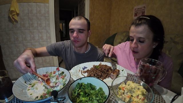 МУКБАНГ НАРЕЗКИ ЛУЧШЕЕ - КУПАТЫ / ГРЕЧНЕВАЯ ЛАПША С СЫРОМ / САЛАТ / MUKBANG АСМР 12. 02. 2025