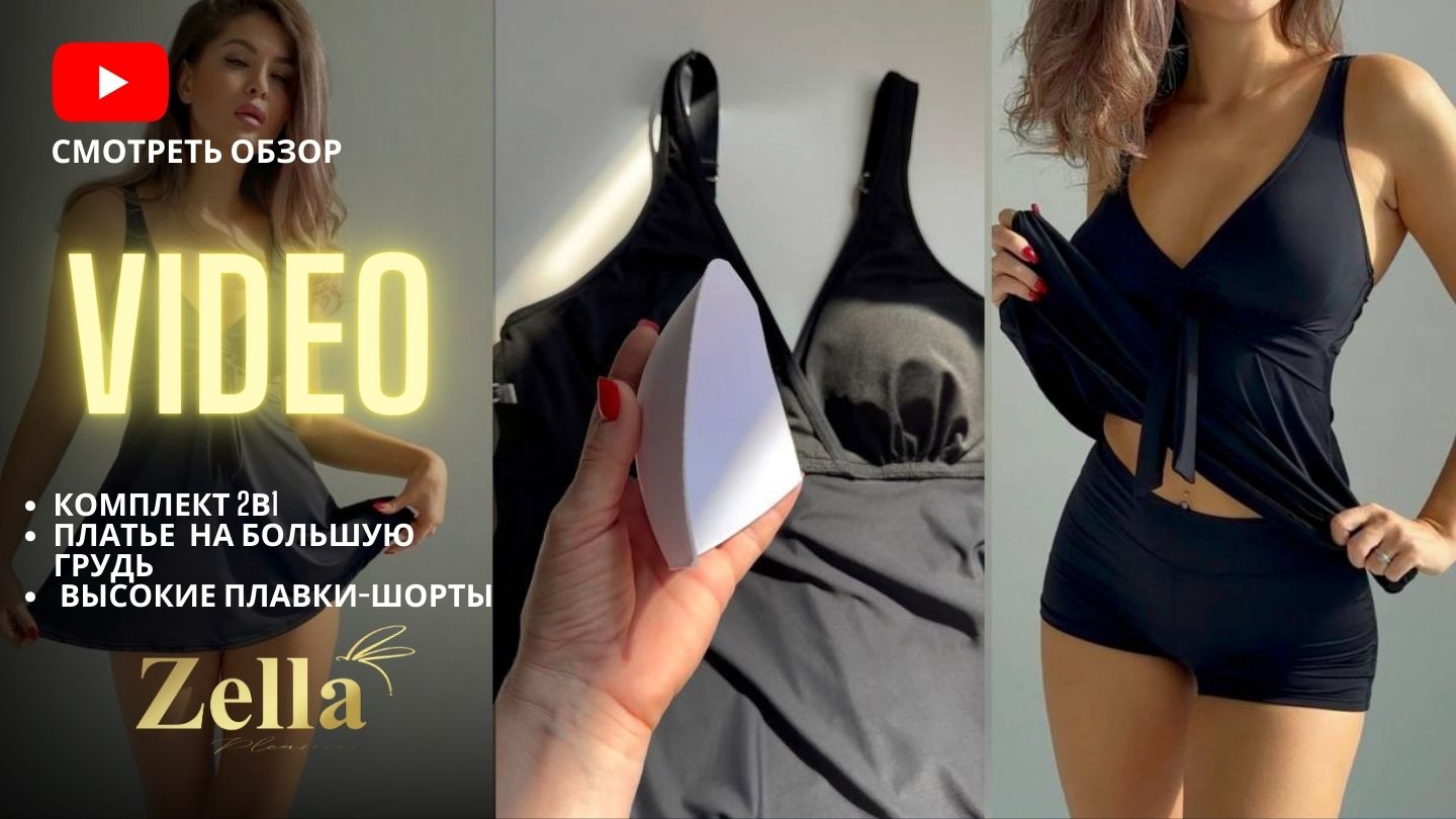 Модный купальник-платье с плавками-шортиками. Черный купальник раздельный. Видеообзор с Wildberries.