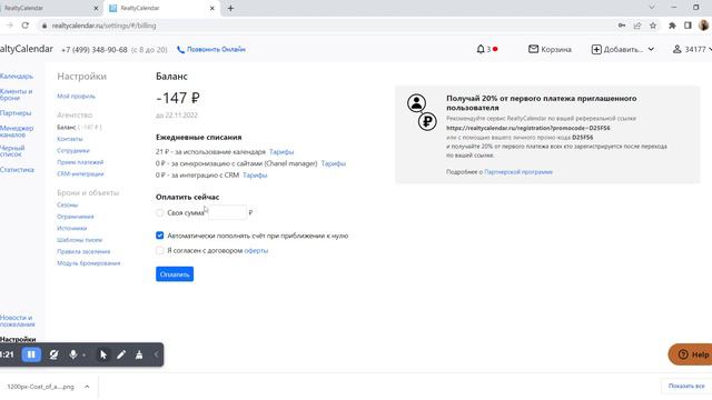 Как проверить баланс в личном кабинете RealtyCalendar