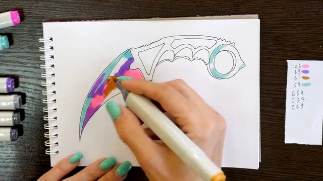 Как нарисовать нож керамбит карандашом и скетч маркерами | Рисунок поэтапно и легко