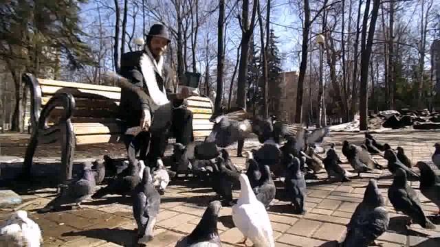 Традиция в день Рождения кормить голубей в парке