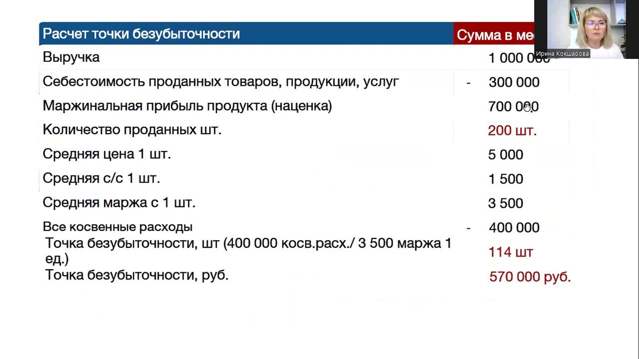 Расчет точки безубыточности