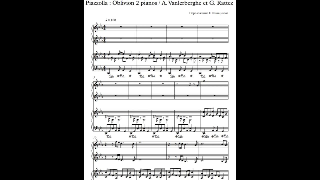 Ноты Piazzolla: Oblivion 2 pianos / A. Vanlerberghe et G. Rattez