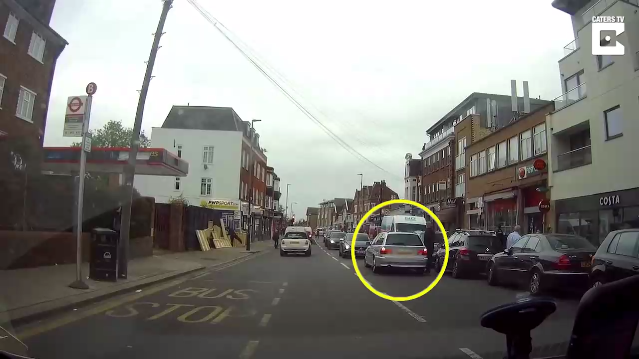 Водитель автомобиля в Лондоне опасно пересек разделительную полосу и перегородил встречное движение. После этого парень включил аварийку и начал разгружать свой автомобиль... #наглость#пробка#встречка