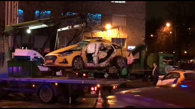 разбитые машины увозят с места дтп