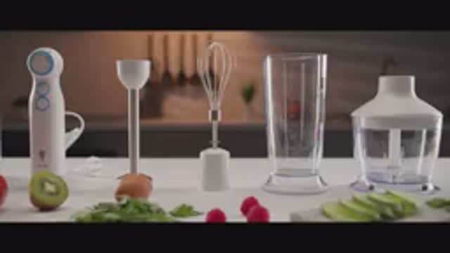 Артикул 105808 2 скорости работы: Обычный и Turbo режим Регулировка скорости Насадка блендер из нержавеющей стали Ножи из нержавеющей стали Измельчитель 500 мл Венчик Стакан для смешивания 800 мл Мощность 800 Вт Напряжение: 220-240 В, 50-60 Гц Гарантия 2 года