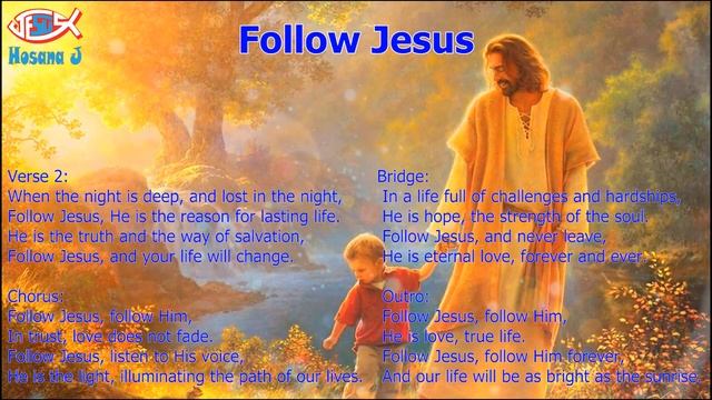 Follow Jesus - Kizomba - Joseph Ton Verse 2: When the night is deep, and lost in the night, Follow Jesus, He is the reason for lasting life. He is the truth and the way of salvation, Follow Jesus, and your life will change. Chorus: Follow Jesus, follow Him, In trust, love does not fade. Follow Jesus, listen to His voice, He is the light, illuminating the path of our lives. Bridge: In a life full of challenges and hardships, He is hope, the strength of the soul. Follow Jesus, and never leave, He is eternal love, forever and ever. Outro: Follow Jesus, follow Him, He is love, true life. Follow Jesus, follow Him forever, And our life will be as bright as the sunrise. Cảm ơn các bạn đã ủng hộ mục vụ chia sẻ Lời Chúa, tài trợ cho người sáng tác nhạc, sáng tạo, sản xuất âm nhạc... Thank you for supporting the ministry of sharing God's word, sponsoring music composers, creators, music producers... Tên tài khoản: Nguyễn Trí Cao Tôn Ngân hàng: VPBank Số tài khoản: 164662829 Account name: Nguyen Tri Cao Ton Bank: VPBank Account number: 164662829 Website Hosana J https://hosanaj.com/ App Android Hosana J https://play.google.com/store/apps/details?id=com.hosanaj Nhấp vô link tải file IPA vào iPhone cài App Hosana J https://drive.google.com/file/d/1N6EFddKNq9wy3BIEd48-gWMXSwyTGVko/view