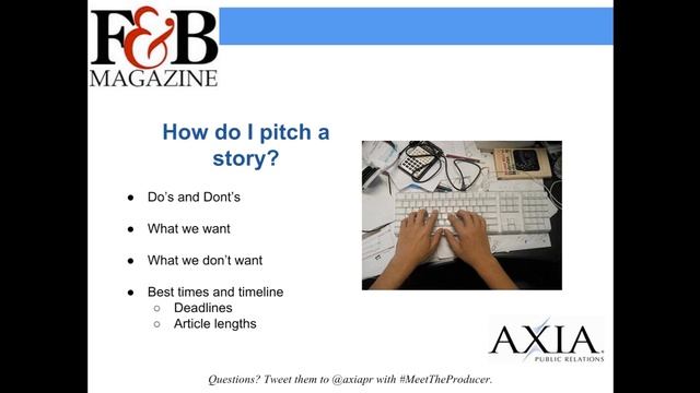Get an in-depth look at how the food and beverage industry works for those in public relations and marketing looking to learn more from someone with experience in industry in this free webinar. Learn more at www.axiapr.com.