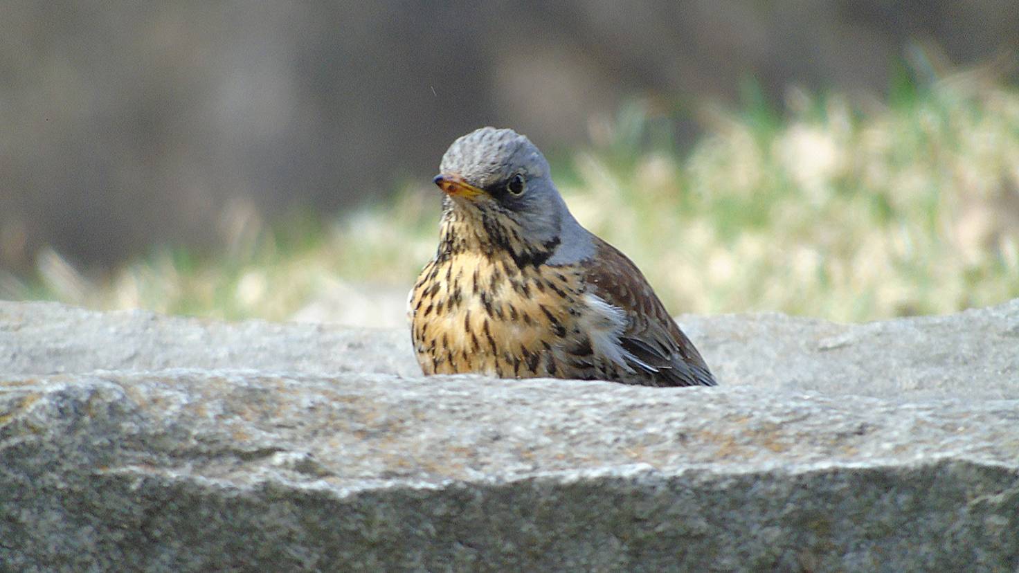 Дрозд купается в естественной каменной ванной