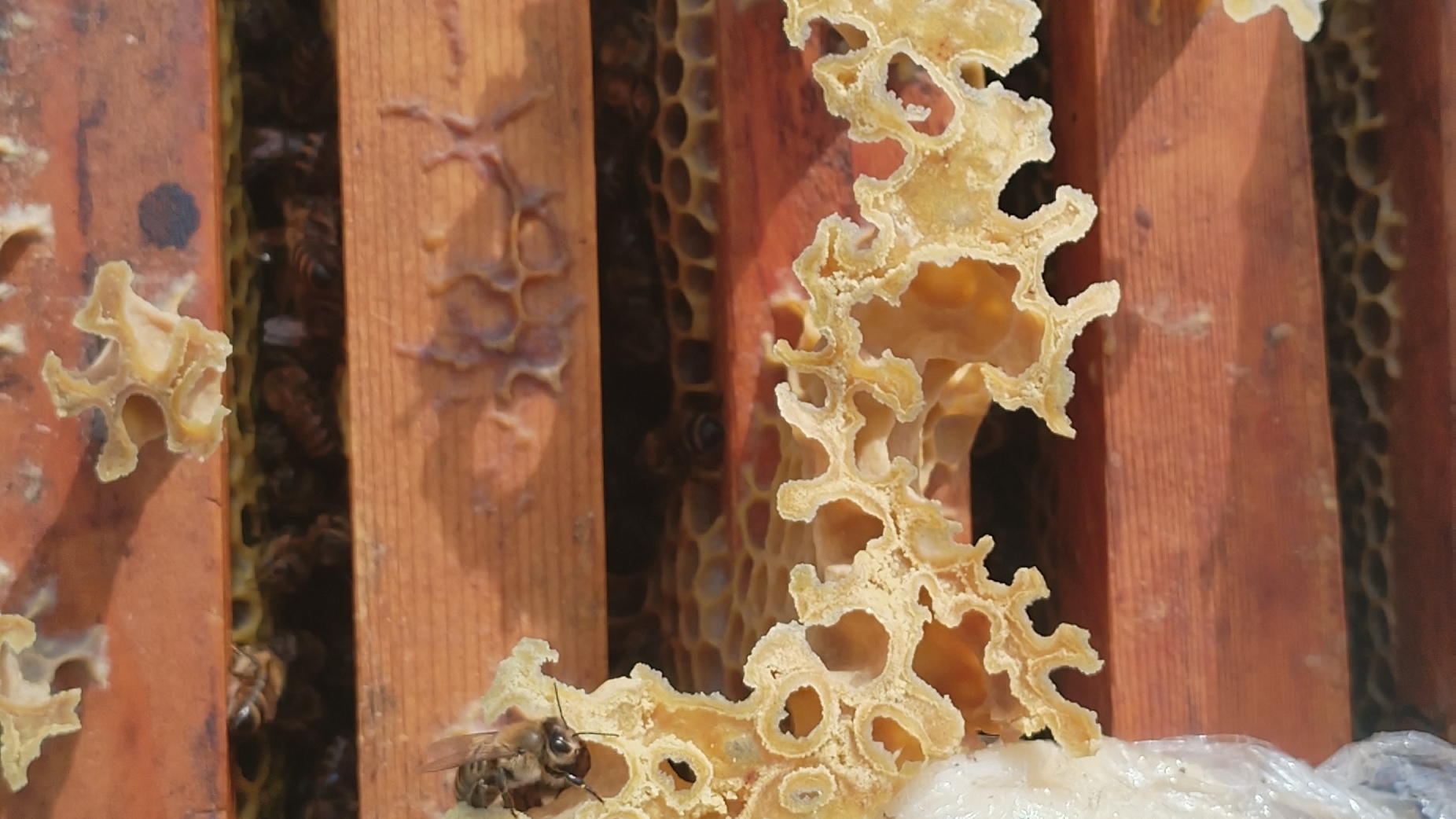 Настала такая пора что надо делать осмотр пчёл и подлаживать корм им чтобы не подохли от голода так как не одна образная днем тело, а ночью минус, а ещё к нам движится циклон будет холодно и снег выпадит.