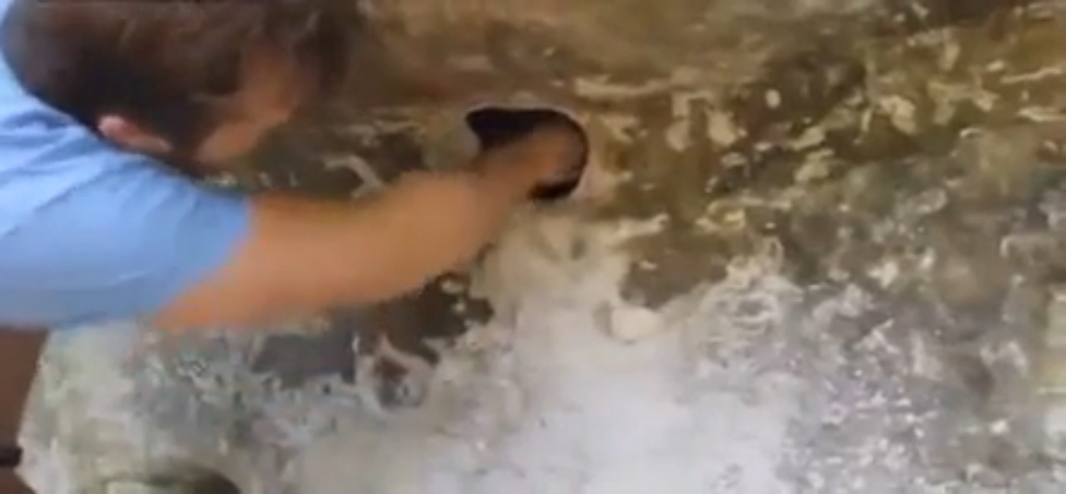 Просунув руку в гнездо мужик вытаскивает гору членистоногих.
