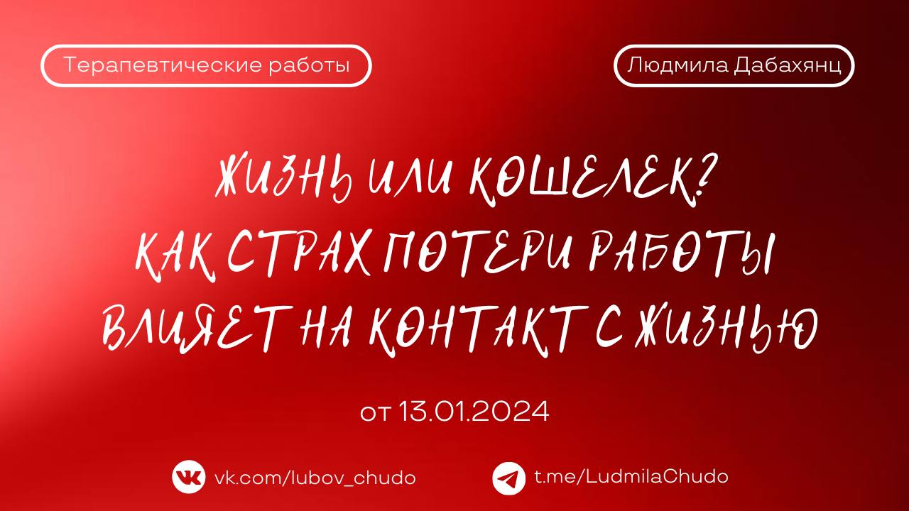 ЖИЗНЬ ИЛИ КОШЕЛЕК Как СТРАХ потери работы влияет на контакт с ЖИЗНЬЮ 13.01.24