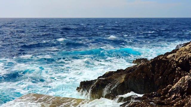 Волны, разбивающиеся об камни. Шум прибоя для успокоения души и тела.