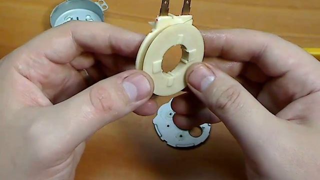 Разбираем двигатель Итак, в этом уроке мы разберем двигатель, посмотрим его устройство. Чтобы разобрать наш моторедуктор, нужно отжать эти зажимы по периметру, это можно сделать такими бокорезами. И вот, видим, снимается крышка и перед нами редуктор во всей красе. Пять шестеренок, снимаем вал вторичный. Редуктор можно вытащить целиком, для этого нужно немного отогнуть вот эти вот стойки и за них потянуть, вот таким легким образом мы сняли редуктор. Что видим внутри. Во-первых, это катушка статора и сам ротор. Ротор вытаскивается, он представляет собой магнит, впрессованный в пластмассовую такую шестерню. Вот я достал ротор и теперь с такой же легкостью можно достать катушку. Вот в принципе и весь наш мото-редуктор в разобранном виде. Вот видим катушку, эта часть тоже снимается. Напомню, что я разбираю двигатель неисправный, сейчас мы его померяем. Предел у нас 200 КОм, меряю, и он у нас в обрыве. То есть где-то в катушке случился обрыв, чтобы до него добраться, нужно ее размотать и намотать другую. Перемоткой мы заниматься будем в другом уроке. А сейчас мы поговорим о неисправностях, какие могут быть связаны с моторами. Во-первых, видим, прекрасно выглядит катушка снаружи, но она в обрыве, то есть возможно, внутри она обгорела или вообще оплавилась, мы сейчас отсюда не увидим. Обрыв катушки это первая неисправность и самая часто встречающаяся пробелам. Обрыв катушки случается из-за перепадов сетевого напряжения, когда печь включена, что- то готовится, и по сети сильный скачок напряжения происходит. Вот в таких случаях. Еще один случай рассмотрим, очень страшный, как видим, тут все окислено. После разборки двигателя все вот в таком виде ужасном. Что случилось в данной ситуации – попала вода в сам двигатель. То есть, возможно, что-то пролили в печке, причем может постоянно проливали, потому как, если пролить один раз, то вода не проходит в двигатель так, как вы сейчас видите. До такого состояние не доходит никогда. А тут такое чувство, что лили и лили что-то постоянно, другое в голову не может ничего прийти. Потом начинает это дело искрить, гореть, все это дело оплавляется. Вот я снял изоляцию с катушки, катушка видно, что не черная, вроде как симпатичная на вид, но вот здесь вот все дело обгорело. И еще одна проблема случается с двигателями – когда катушка звонится как исправная, казалось бы, все нормально, напряжение к ней подходит, но двигатель не вращается. В таком случае нужно разобрать двигатель, возможно, что у вас такая проблема. То есть ротор расклеился на части и уже не вращается. Вот такая тоже неисправность хитрая. Вот три проблемы я рассмотрел, и в данном случае клеить бесполезно, в данном случае тоже обмену не подлежит. А что касается обрыва катушки, то двигатель можно восстановить, намотав новую обмотку, только мотать обмотку будем уже на него не под 220V, а под 21, то есть мы из этого двигателя сделаем двигатель с питанием 21V. Ну, пока все.