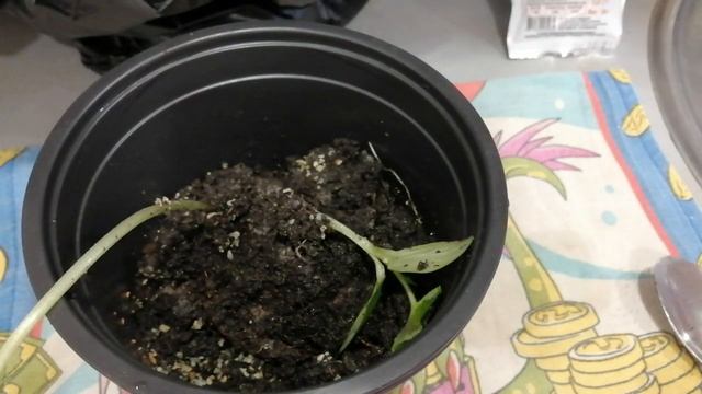 Огурчик, как подрос? Пора делать перевалку, с внесением удобрения.