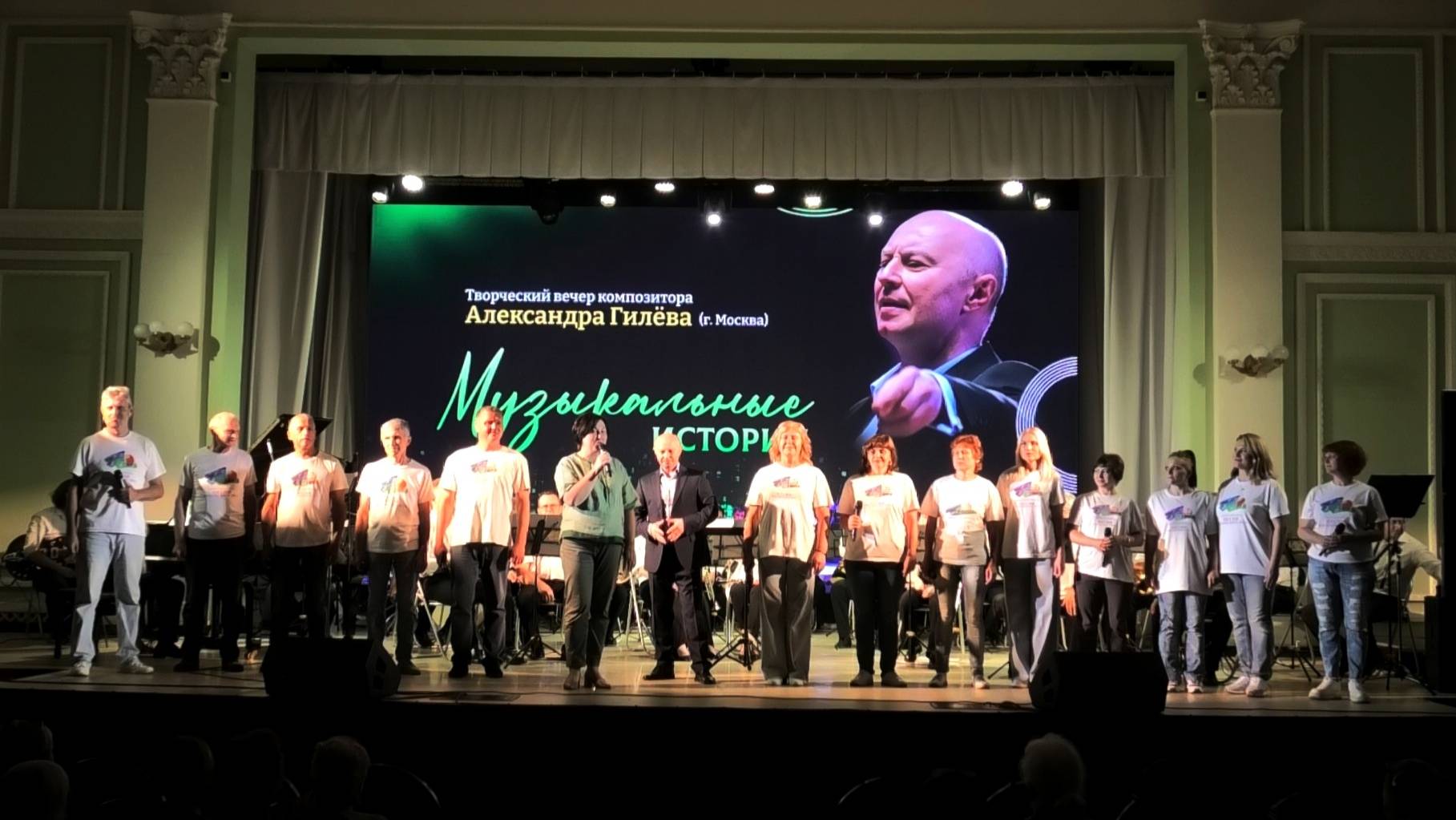 19 июня 2025 года в 18.30 в Барнауле, в концертном зале Алтайского государственного института культуры на Ленина, 66 состоялся концерт московского композитора Александра Гилева. художественного руководителя студии «Юные Александровцы» Академического ансамбля песни и пляски Российской Армии им. А.В. Александрова (г. Москва) Александр Геннадьевич несколько лет назад был приглашен в состав жюри фестиваля-конкурса «Песни иткульского лета» на озере Уткуль в Троицком районе, там он познакомился с самодеятельными композиторами Алтая, их творчеством, с красивейшей природой нашего края. Вместе с Анной Лакиза и, созданной ими командой, они воплотили в жизнь проект «Школа композиторов». Программа авторского концерта «МУЗЫКАЛЬНЫЕ ИСТОРИИ» композитора А. Гилева (г. Москва) 1. «Бис Бэнд марш» - дирижёр А.Онищенко 2. «Самба» - концертная пьеса для флейты с оркестром - солист Заслуженный артист РФ Юрий Черноусов дирижёр А.Гилёв 3. «Листая старые альбомы» - исп. Антон Концеба, дирижёр А.Гилёв 4. «Whitenight» - пьеса для саксофона-альта с оркестром, солист Вадим Глушков, дирижёр А.Онищенко 5.«Серенада Моцарт» - концертная пьеса для скрипки с оркестром, солистка Анна Галкина 6. «Город воинской славы» - на стихи Сергея Саунина, поёт Антон Концеба, дирижер А.Онищенко 7.«Балтийская палитра» - дирижёр А.Онищенко 8.«Корова» - на стихи Валерия Шульжика, поёт поёт вокальный ансамбль «Бригантина», дирижер А.Гилёв 10.«Россия, родина синкоп» - на стихи Павла Каликина исполняет вокальный ансамбль «Бригантина» ДМШ при АлтГМК, дирижер А.Гилёв 11.«Гренадер» -исп. Антон Концеба, дирижер А.Гилёв с ансамблем барабанщиц «РИТМЫ ВРЕМЕНИ» 12.«Ты выдумал меня» - на стихи Анны Ахматовой, дуэт сопрано в сопровождении фортепиано и флейты 12. «Принцесса»- на стихи Н.Гумилева, Игорь Козловский и Ксения Герасимова, дирижер А.Гилёв 13.«Валторна» - исп. вок.ансамбль «Бригантина» на стихи Галины Дядиной, дирижёр А.Гилёв 14.«Частушка» - концертная пьеса тубы с оркестром, солист Алексей Иванов, дирижер А.Онищенко 15. «Наша уникальная, школа музыкальная» - исп. ансамбль Школы композиторов на стихи Павла Каликина, дирижер А.Гилёв 16. «Приглашение на фестиваль» - дирижёр А.Гилёв Ведущая концерта Вера Климанова Видео Геннадия Городилова