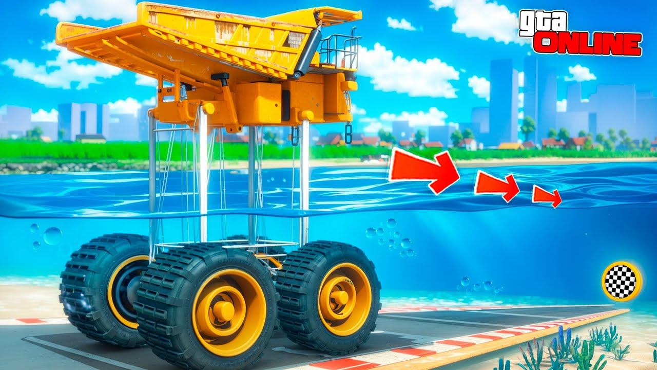 КАК ДАЛЕКО БЕЛАЗ НА ОГРОМНОЙ ПОДВЕСКЕ СМОЖЕТ ПРОЕХАТЬ ПОД ВОДОЙ ДО ФИНИША? ЭКСПЕРИМЕНТЫ ГТА 5